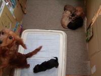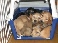 ベリーの里親さんが決まりました。ベリーは千葉市に行きます。私の姉の知り合いのご両親です。ずーとワンコを飼いたかった里親さんがワンコを飼える環境になったそうです。ベリーはとてもおとなしい子です。もちろん兄弟とじゃれてやんちゃなところもあります。モモの性格に一番近い子です。甘ったれなところもあり、私の膝の上に良く乗っています。きっと里親さんのところでも膝の上に乗りたがる甘ったれさんだろうな。チビ達みんな里親さんが決まりました。あと一週間後にはチビ達が巣立ちます。 |